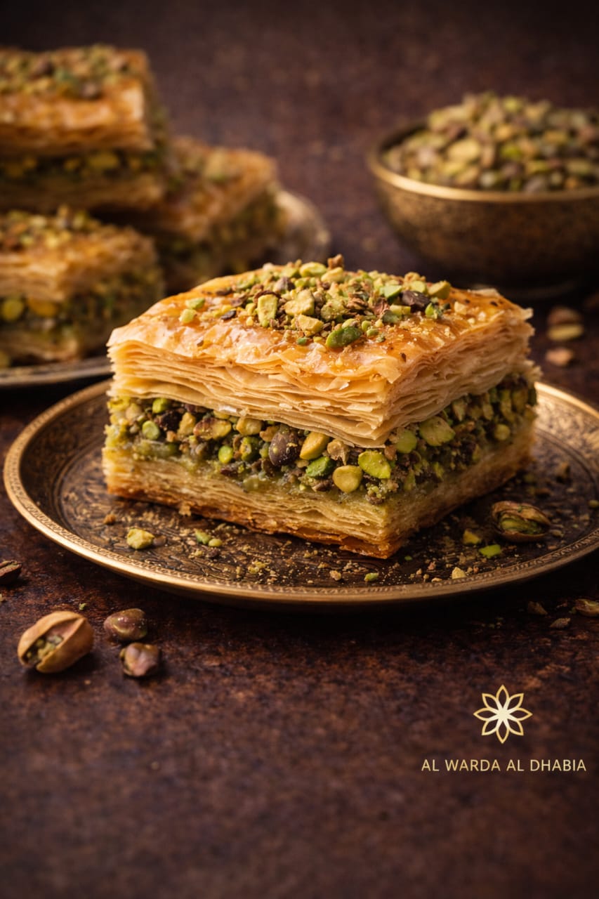 Indulge in a luxurious dessert experience with our Pistachio & Cream Mille-Feuille. This elegant treat features delicate layers of crispy, golden pastry stacked with rich, velvety cream generously coated in premium pistachios. Finished with fresh strawberry slices and a light drizzle of syrup, it offers the perfect balance of crunch, creaminess, and nutty sweetness.